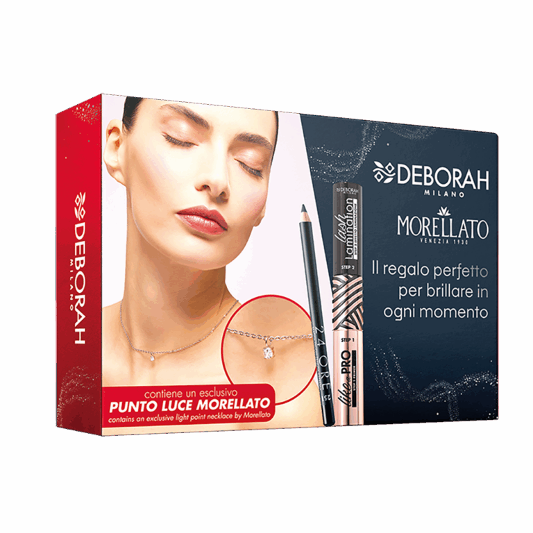 Комплетот за убавина 03 содржи: маскара Like A Pro Duo, молив за очи 24 Ore и ѓердан Morellato со светкав привезок.