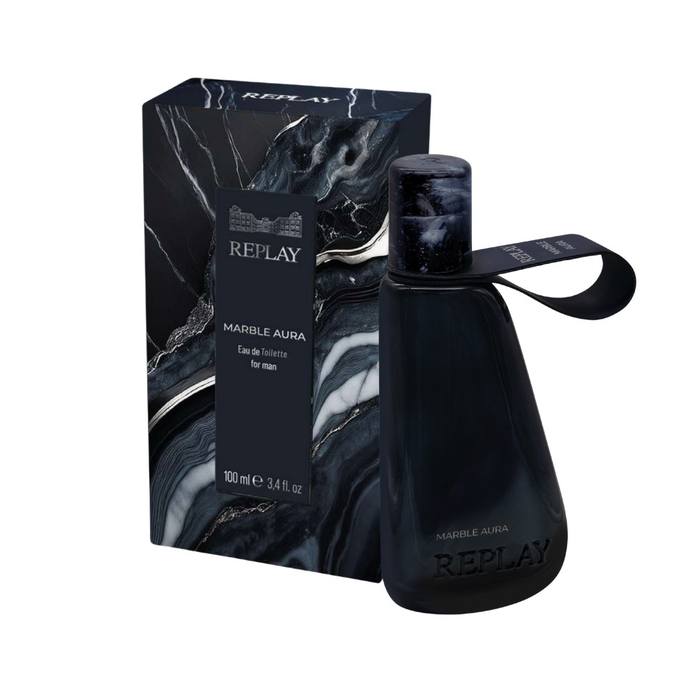 REPLAY Marble Aura man оддава почит на внатрешната цврстина на современиот маж. Овој мирис хармонично ја спојува нескротената сила на природата со рафинираната прецизност на естетиката.